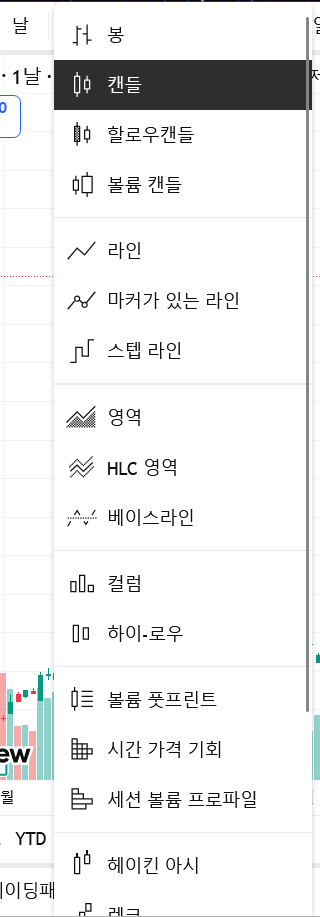 인터벌 오른쪽에 '캔들'을 클릭하시게 되면 캔들 유형을 선택하실 수 있으니 한 번 확인해보세요~