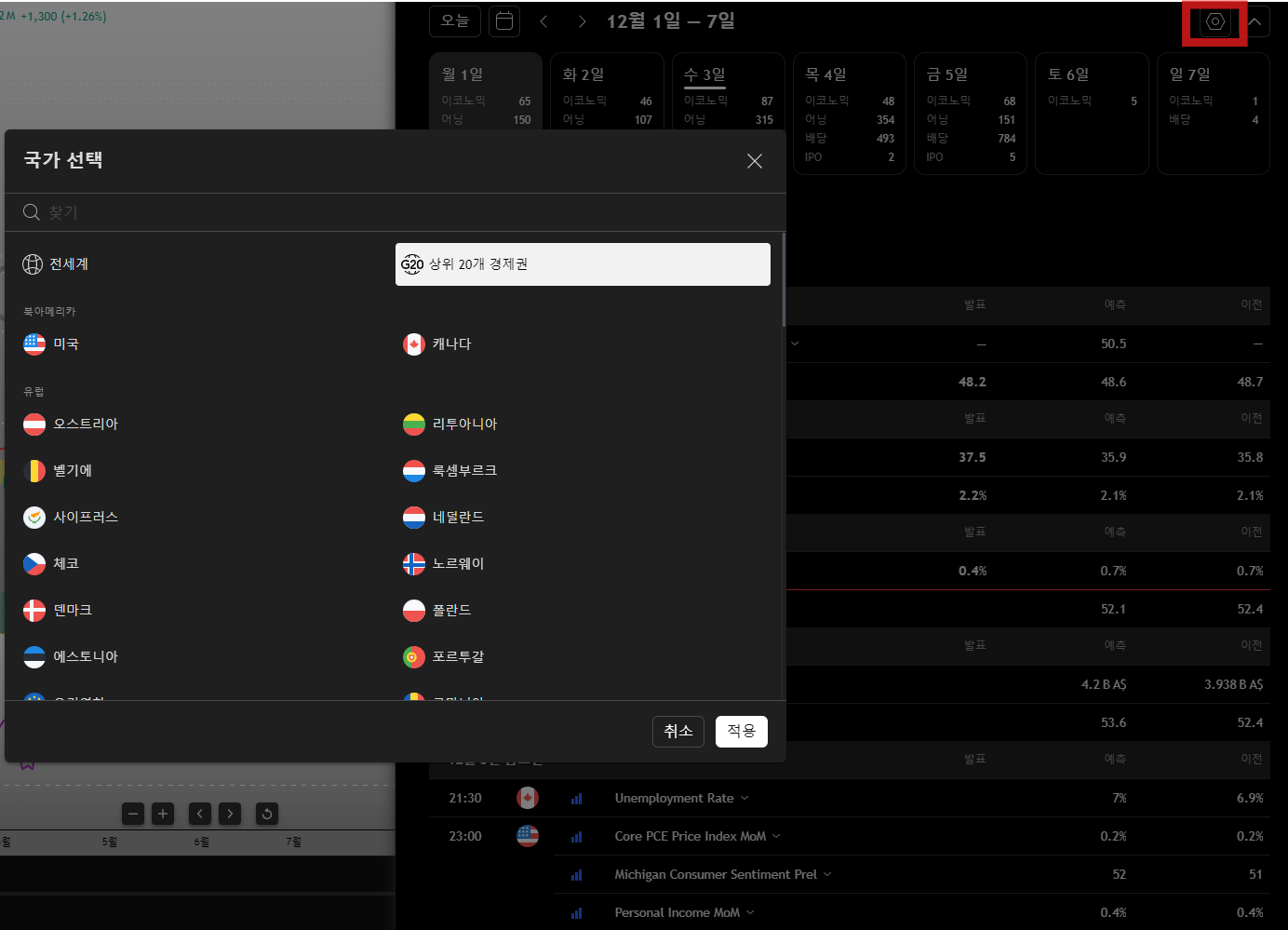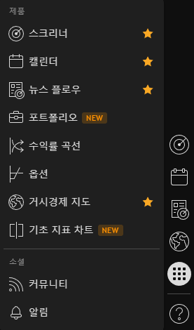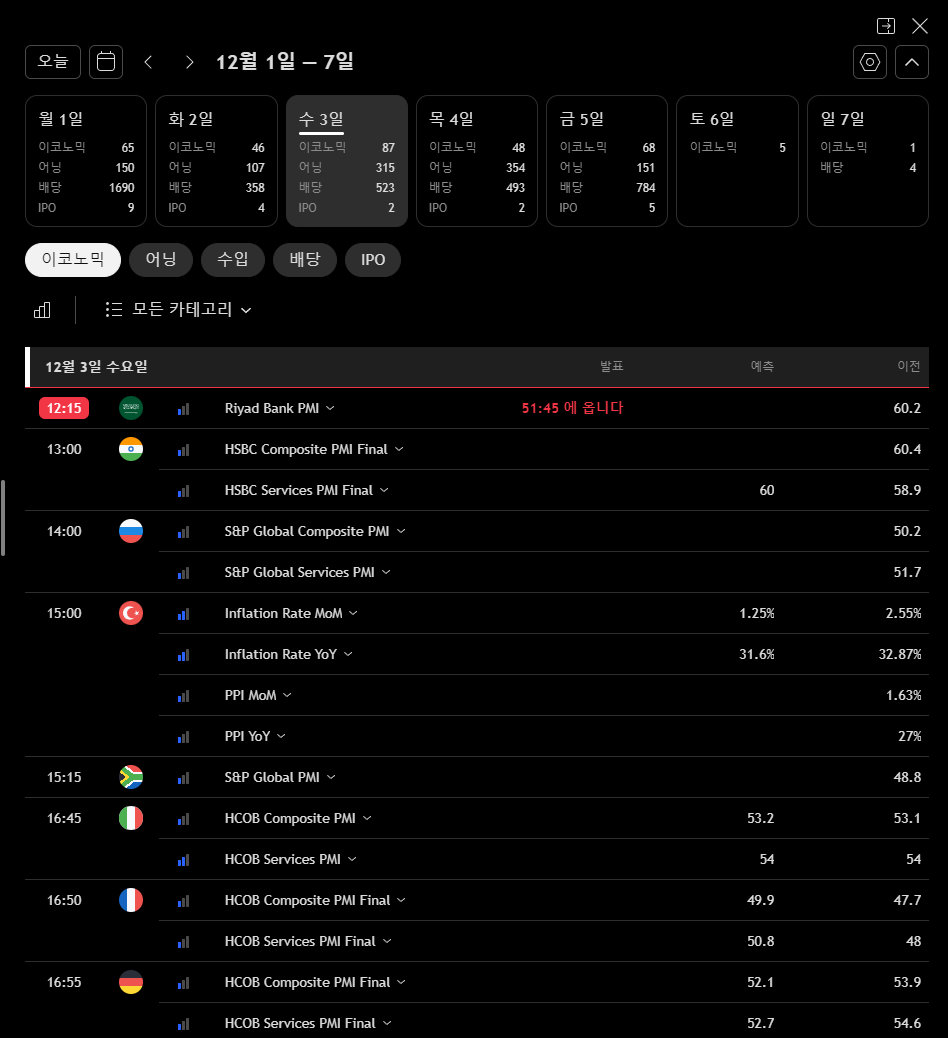 여기서 각 국가의 정부/은행의 경제 지표 발표 날짜, 기업의 실적 공개 또는 배당 날짜 등을 확인하실 수 있습니다.