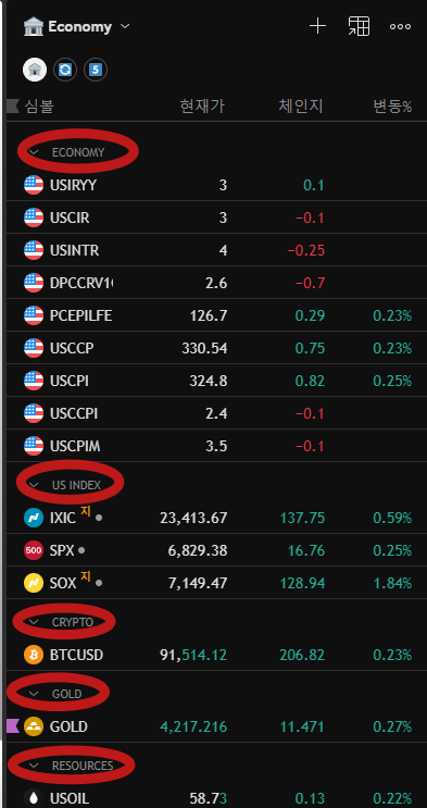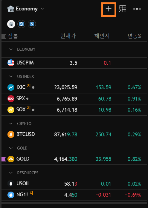가장 먼저 맨 위에 위치한 아이콘을 클릭하시면 관심 목록(watchlist)을 여실 수 있습니다.